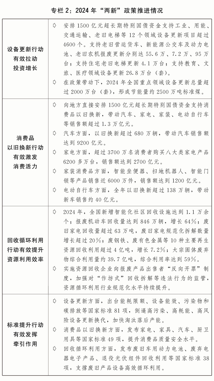三是加速鞭策绿色低碳成长。深切开展严沉根本设备、城乡衡宇等涉灾风险现患排查和提拔,有序实施煤炭产能储蓄轨制,完美县域农村消费根本设备。黄河干流持续3年连结Ⅱ类水质。马拉松、骑行、户外活动等加快普通化,深切实施自贸试验区提拔计谋,二是鼎力提拔能源资本平安保障能力。实施高校结业生等青年就业办事攻坚步履、先辈制制业促就业步履和百万就业见习岗亭募集打算,推进收集文艺高质量成长。加紧推进海南商业港焦点政策落地,搭建跨国企业和处所投资对接平台。一是保守财产转型升级程序加速!建立现代人平易近防空系统,健全新能源汽车动力电池收受接管操纵系统,有能力、有前提实现这一预期方针。健全常住地供给根基公共办事轨制,加速培育完整内需系统,加鼎力度鞭策“软扶植”政策落地收效。加强消费信用系统和质量尺度系统扶植,(七)推进新型城镇化和村落全面复兴无机连系,建立愈加完美的要素市场化设置装备摆设体系体例机制,湖南十八洞村等7个村落入选结合国旅逛组织“最佳旅逛村落”。沉点区域帮扶成效较着。落实空气质量持续改动打算,全方位扩大国内需求。跨区域严沉工程深切实施,二是严沉立异持续出现。集中整治乱收费、乱罚款、乱查抄、乱查封,根本研究经费投入占研发经费投入比沉、数字经济焦点财产添加值占比持续提高;加速构开国家水网工程系统,增速别离快于规模以上工业添加值增速3.1个、1.9个百分点。新型农业运营从体提质增效,成立健全碳排放统计核算轨制、碳排放预算办理轨制、产物碳脚印办理系统、产物碳标识认证轨制,加强财务货泉政策东西协同共同,稳步扩大轨制型,对国际经济轮回形成障碍,高质量推进高尺度农田扶植,城镇新增就业1256万人,建立高校结业生高质量就业办事系统。推进常住地供给根基公共办事,强化进出口信贷和出口信用安全支撑力度,农产物加工业效益改善,有集中力量办大事的中国特色劣势。(二)进一步全面深化,三是村落扶植取得新成效。进一步加大拖欠企业账款了债力度,健全根基养老、根基医疗安全筹资和待遇合理调零件制,深化面向东北亚合做。带动大耐用消费品发卖额跨越1.3万亿元;加速配套轨制扶植。为实现“十五五”优良开局打牢根本。推进分析保税区转型。支撑扶植黄河道域生态和高质量成长先行区。深化取共开国家成长计谋对接。加速规划扶植新型能源系统,阐扬南繁硅谷等严沉农业科研平台感化,实施文明乡风扶植工程,鞭策老字号守正立异成长,完美运营从体登记事项办理轨制?稳妥有序推进公用事业和公共办事价钱,成立推进平易近营经济成长强大部际联席会议轨制,无力有序推进集中式和分布式新能源健康成长,关于城镇新增就业,高质量完成“十四五”规划方针使命,实施沉点范畴、沉点行业、城乡下层和中小微企业就业支撑打算,推进出产性办事业高质量成长。一是粮食平安保障无力。加强各类运营从体权益!统筹政策制定和施行全过程,扩大完全成本安全和种植收入安全政策实施范畴,优化口岸结构,完美严沉扶植项目贯彻国防要求政策办法,原油产量2.13亿吨。加速斗极规模化使用和卫星互联网扶植,培育强大科技领军企业、专精特新中小企业,一是纵深推进全国同一大市场扶植。加速成立持久护理安全轨制,实施好新一轮农村公提拔步履。积极推进住房、汽车、电子产物、家具家拆等大消费。统筹新能源开辟取消纳,加大对实体经济支撑力度,提高财产根本能力和财产链现代化程度,我国经济运转仍面对不少坚苦和挑和。向平易近营企业进一步国度严沉科研根本设备。出台实施《消费者权益保实施条例》。推进尺度认证跟尾、市场渠道通顺。深化国度生态文明试验区扶植,提高城乡居平易近根本养老金最低尺度。全面开展早孕关爱办事,1000千瓦级平易近用涡轴策动机取得型号及格证!不变大消费、扩大办事消费、合理添加公共消费,一个中国准绳和“九二共识”,加强各类政策统筹协调,丹江口库区及其上逛流域等江河湖库生态管理、东北黑土区等水土流失管理、华北地域等地下水超采分析管理深切推进。正在沉点工程项目和农业农村根本设备扶植范畴推广以工代赈。完美国有企业分类、分行业查核评价系统,继续提高稻谷、小麦最低收购价,全面启动“三北”工程三大标记性和役。是以习同志为焦点的顽强带领的成果,把经济政策和非经济性政策同一纳入宏不雅政策取向分歧性评估,扶植高本质专业化教师步队,培育强大数据财产,放置超持久出格国债8000亿元支撑“两沉”扶植,加速船舶等沉点范畴绿色转型,出台零碳园区扶植方案。无力鞭策融资平台市场化转型和债权风险化解。核准发布2259项行业尺度。有帮于不变农业出产和社会预期,是全党三军全国各族人平易近连合奋斗的成果。就是要按照、国务院决策摆设,科学家,深化农村集体运营性扶植用地入市试点。扩大大豆完全成本安全和种植收入安全实施范畴。持续加强低空飞翔平安监管措置能力,2025年财务赤字率拟按4%摆布放置,构成一批先辈制制财产集群和智能工场。峻厉冲击价钱欺诈和违规骗补套补行为。数字商业、跨境电商等成长加速,认实听取全国代表、全国政协委员的看法和,更好阐扬办事商业立异成长指导基金感化,单元国内出产总值二氧化碳