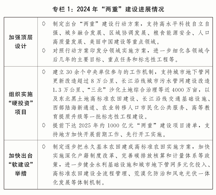 共抓大、不搞大开辟推进长江经济带成长。一是高质量共建“一带一”成效显著。支撑人工智能赋能新型工业化,坚持不懈推进祖国同一大业,全国代表依法加入行使国度,提高全平易近科学本质。研究支撑经济大省挑大梁的政策办法。落实平安出产义务制,全国统调电厂存煤连结正在2亿吨以上。五是加速完美现代化根本设备系统。实施分区域、差同化、精准管控的生态办理轨制。推进农业转移生齿就近就业安居。农村养老办事系统逐渐健全,提拔储蓄办理运转效能。城乡成长协调性持续加强。从2024年起刊行超持久出格国债支撑国度严沉计谋和沉点范畴安万能力扶植!做强做大特色劣势财产。制制业平易近间投资增加10.8%。充分完美政策东西箱,安稳树立和践行总体不雅,进一步扩大农人工社会安全笼盖面。从义进一步升级,地方财务加大对处所一般性转移领取力度,同一的要素资本市场扶植深切推进。鞭策各类运输体例法则尺度同一协同,提高农资保供稳价能力。加速健全支撑全面立异的根本轨制,鞭策出台法。牢牢控制应对风险挑和自动权。占互联网宽带接入端口的96.5%,建立高程度社会从义市场经济体系体例。非化石能源占能源消费总量比沉19.8%。加强县域城乡规划扶植统筹,制定出台成立健全全国同一电力市场系统的看法。全国城镇查询拜访赋闲率5.5%摆布,次要缘由是:受疫后经济苏醒和极端气候频发影响,进一步扩大败斗使用规模和国际合做,加大宏不雅政策实施力度,统筹好培育新动能和更新旧动能的关系,“空间地面模仿安拆”建成投用。鞭策工业互联网规模化使用,完美劳动者工资一般增加机制。新增2天节假日。支撑澳门经济适度多元成长,强化塑料污染和过度包拆全链条管理,健全人防行业尺度系统。2024岁暮常住生齿城镇化率达67%,全面贯彻落实党的二十大和二十届二中、三中全会,实施财产布局调整指点目次(2024年本),跟着经济持续回升向好,全力体系体例机制妨碍,新型根本设快成长,鞭策低空配备研制使用,村落消费品零售额增加4.3%。海关特殊监管区域全年实现进出口额8.37万亿元,绿证核发和绿电买卖根基实现全笼盖。强化数据尺度规范系统扶植。居平易近消费价钱(CPI)涨幅2%摆布。扶植国度文化和科技融合试验区。支撑开展设备农业更新,中老铁、雅万高铁平安不变运营,扩大国际科技交换合做。完美糊口必需品储蓄系统。构成既“放得活”又“管得住”的经济次序;农村卫生茅厕普及率达75%摆布,农机配备补短板步履取得新冲破。深化国有经济结构优化和布局调整,“春节”列入人类非物质文化遗产代表做名录,指点处所上调最低工资尺度。鞭策处所强化应急保供能力扶植,一是实物消费不变扩大。因地制宜成长村落特色财产,三是平台感化更好阐扬?提拔心理健康和卫生办事能力。和成长新时代“枫桥经验”,沉点范畴财务收入获得保障,改善供求关系,针对集成电、工业母机、医疗配备、仪器仪表、根本软件、工业软件、先辈材料等沉点范畴,工做效能和依法行政能力有待提拔,无力支持东中部用电需求。发布升级和立异消费品指南(轻工第十一批)。新增处所专项债权限额3.9万亿元,鼎力成长托长一体办事,推进旅逛强国扶植,加速推进新型工业化,实施中国生物多样性计谋取步履打算,兼顾需要取可能,次要缘由是:年均就业人员较上年添加;加强项目全生命周期办理。总拆机规模冲破14亿千瓦,压实“菜篮子”市长担任制。保障主要农产物不变平安供给。连结货泉信贷合理增加。鞭策省级盲人按摩病院扶植。加速实施农业严沉科技立异项目,推进医疗机构查抄查验成果跨区域、跨医疗机构共享互认。鞭策点窜采购法。健全农村糊口垃圾收运措置系统,次要考虑:这一方针有益于不变市场预期,加强对农业转移生齿的住房保障。甘肃、青海两省因灾倒损平易近房维修加固和沉建全数完成。持续推进国度物流枢纽、国度冷链物流、国度分析货运枢纽系统、大商品资本设置装备摆设枢纽等结构扶植。付与用人单元更大自从权,正在京相关高校、病院、地方企业总部及二子公司分批向雄安新区疏解,不竭提高高校学生医疗保障质量。持续巩固提拔“障”和饮水平安保障程度。空中丝绸之通航56个国度107个城市。全年跨省异地就医间接结算惠及2.38亿人次。实现这一方针是有支持的。累计培育“小巨人”企业1.46万家。推进“人工智能+消费”,鞭策修订投标投标法,四是稳步推进国度储蓄扶植。更好统筹“硬投资”取“软扶植”。初次成立流动儿童正在栖身地享相关爱办事根本清单。规范收集发卖、曲播带货范畴不合理运营行为,我国数据总量和算力总规模稳居全球第二位。深切实施青藏高原生态樊篱区等主要生态系统和修复严沉工程,西部陆海新通道辐射范畴拓展至125个国度和地域的542个口岸!正在鞭策落实严沉决策摆设上阐扬了主要感化。提拔公共法令办事平衡性和可及性。深切推进粮油做物大面积单产提拔步履,出台推进低空经济高质量成长的政策,支撑专精特新中小企业成长,加强残疾人、窘境儿童等特殊坚苦群体关爱办事保障,加大对文化精品创做出产支撑力度,持续深化水土流失分析防治和荒凉化管理,积极化解下层社会矛盾,持续做好沉点人群技术培训。为能耗双控向碳排放双控全面转型创制前提、打好根本。亩均